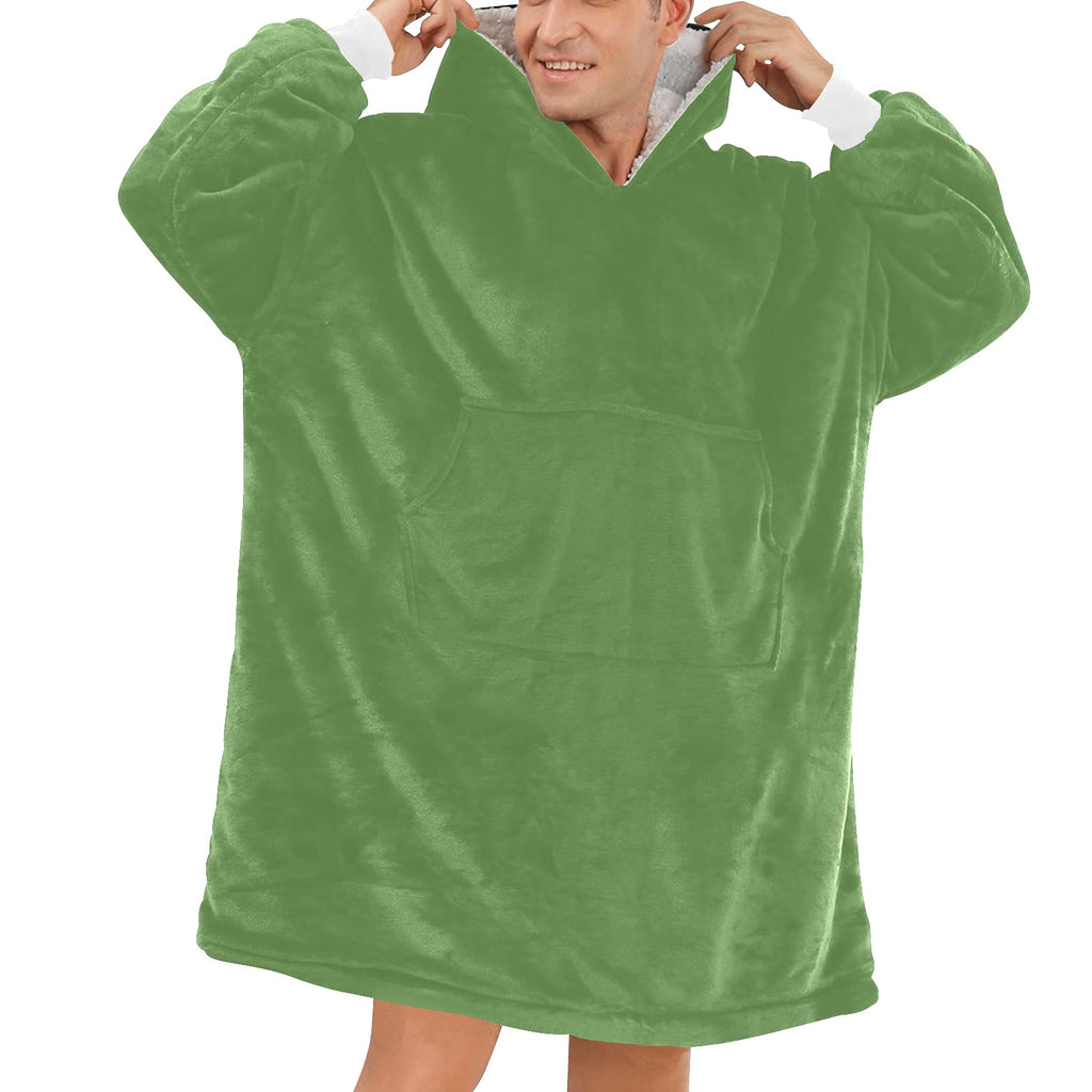 Men's Bottle Green & Black Solid Blanket Hoodie