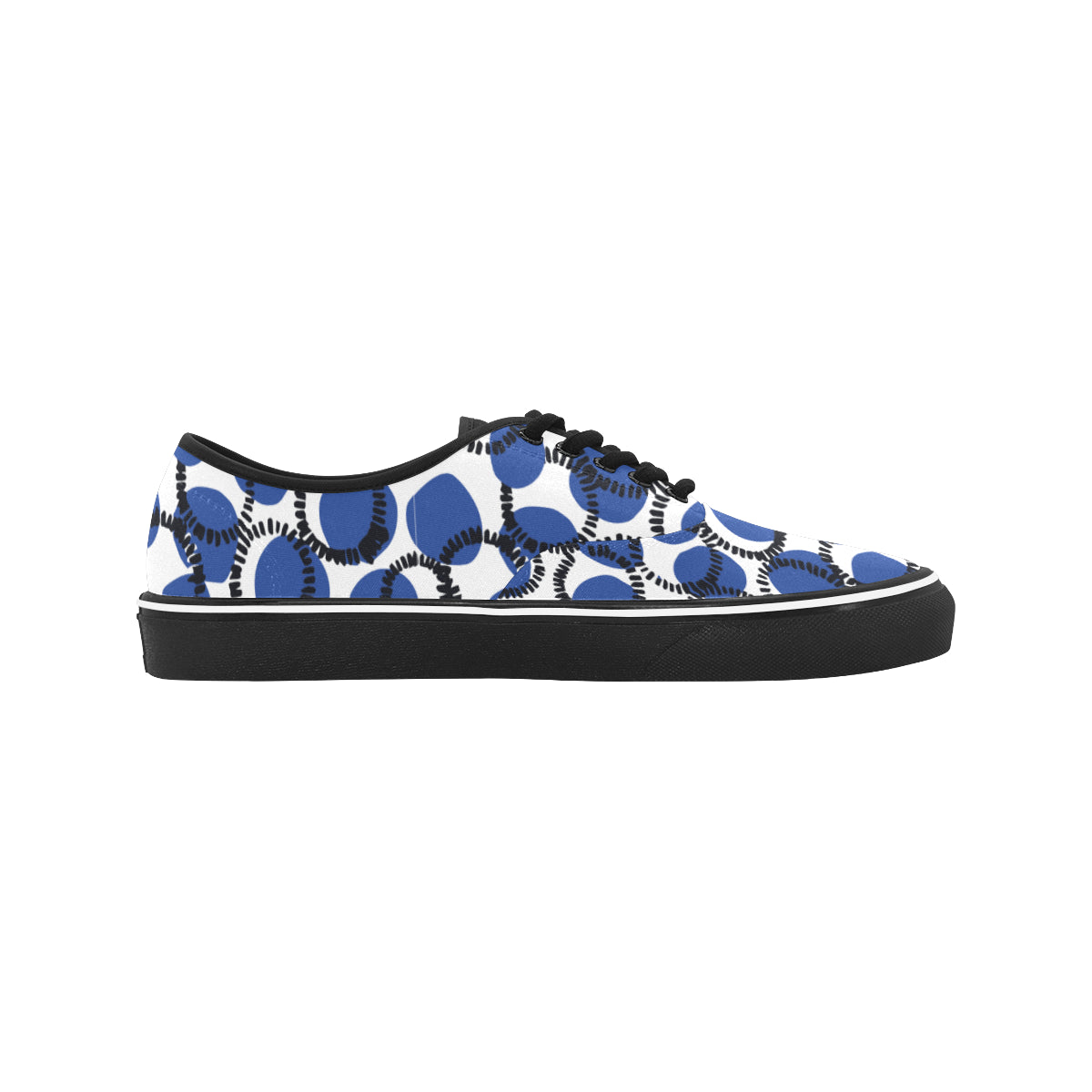 Men's White Blue Polka Print Canvas Low Top Shoes