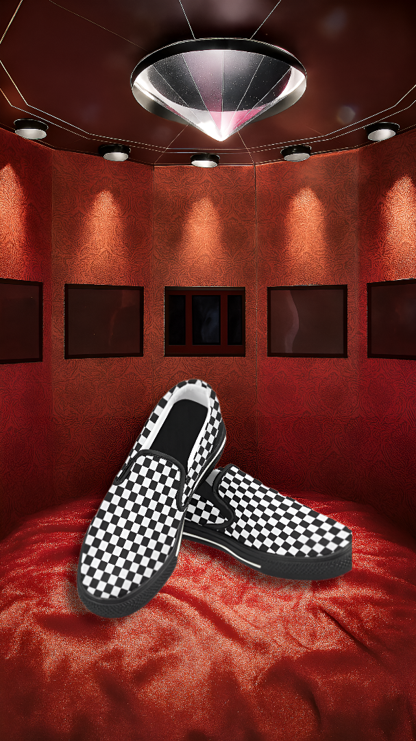Men's Classic B/W Checks Print Slip-on Canvas Shoes