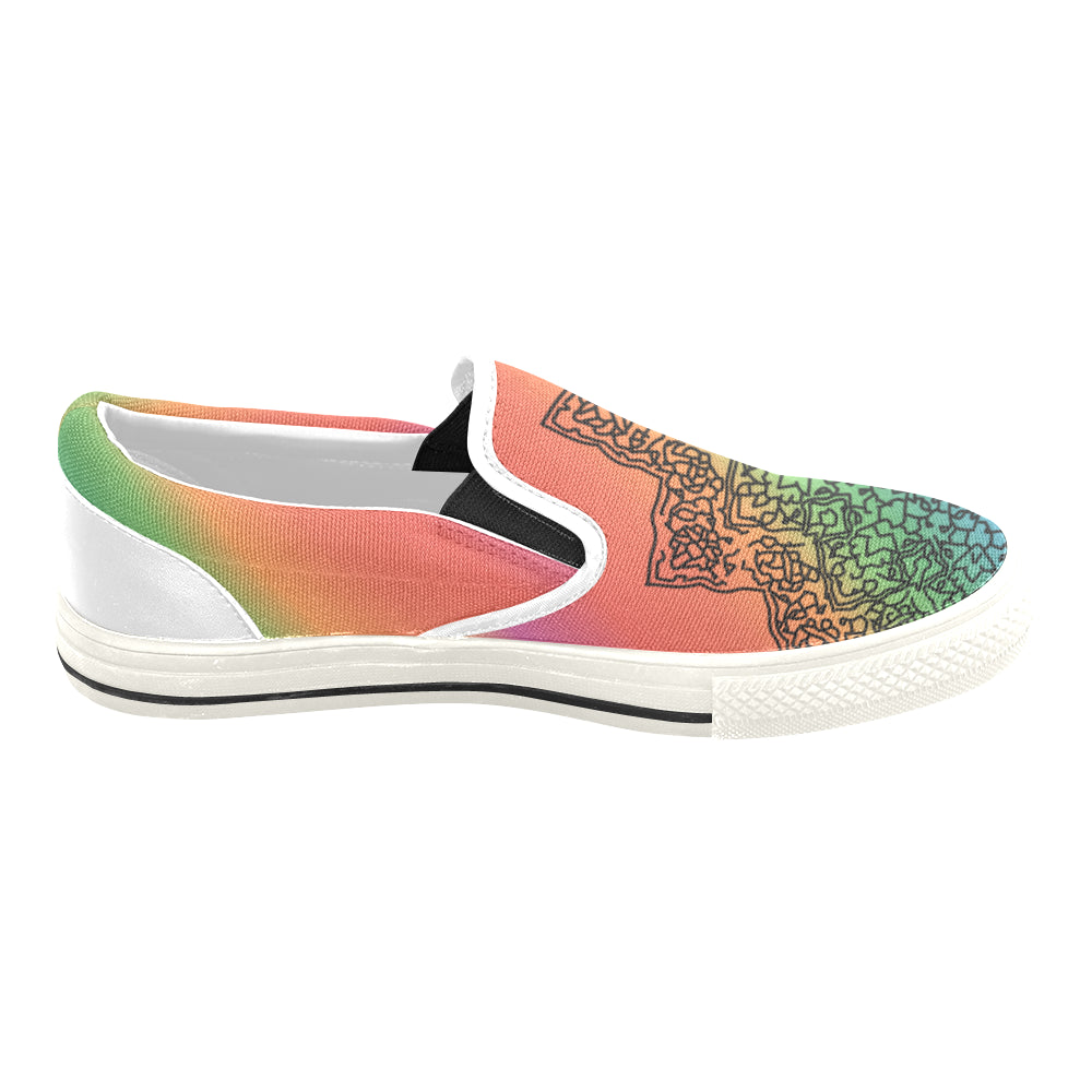 Men's Colorful Doodled Mandala Print Canvas Slip-on Shoes