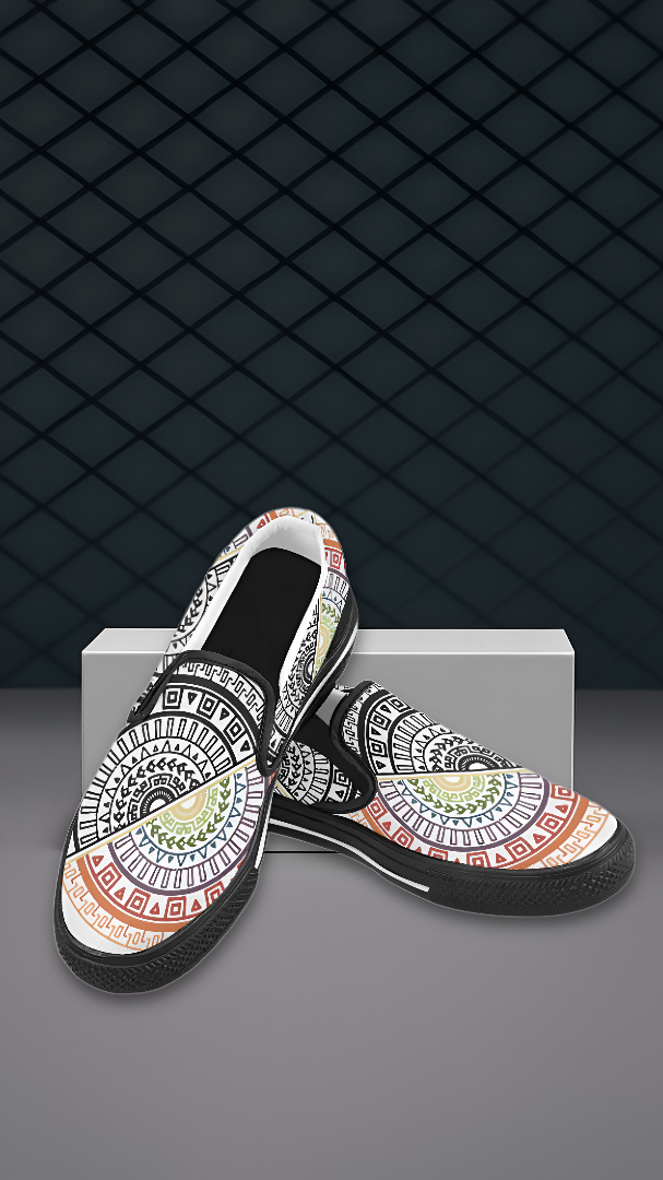 Men's Ying Yang Mandala Print Canvas Slip-on Shoes