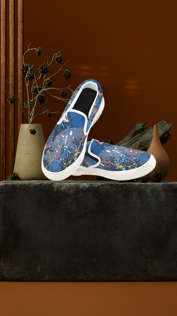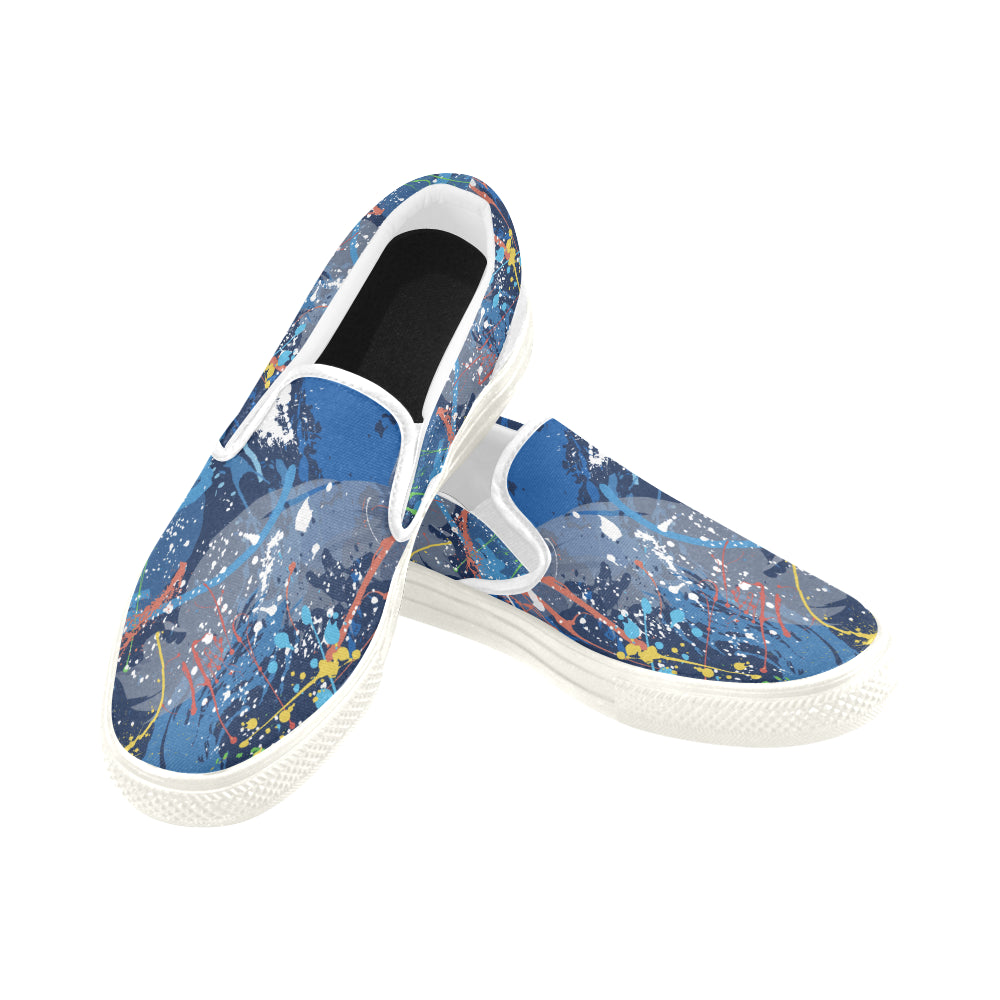 Men's Aquatic Paint Splatter Print Canvas Slip-on Shoes
