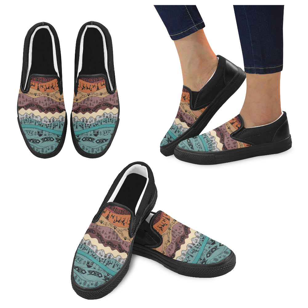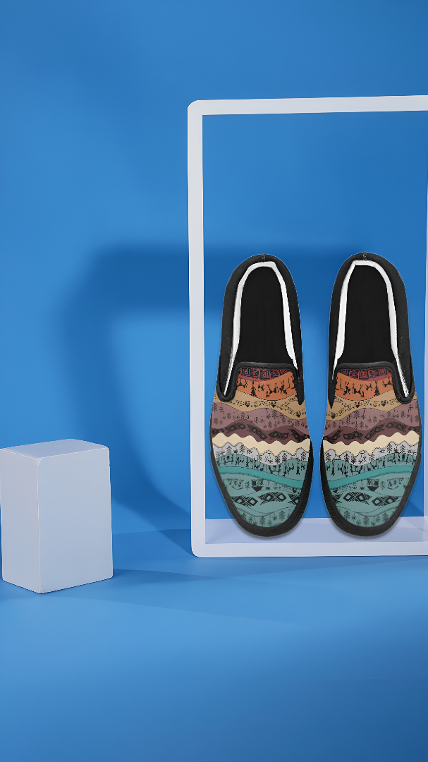 Men's Hued Waves Tribal Print Slip-on Canvas Shoes